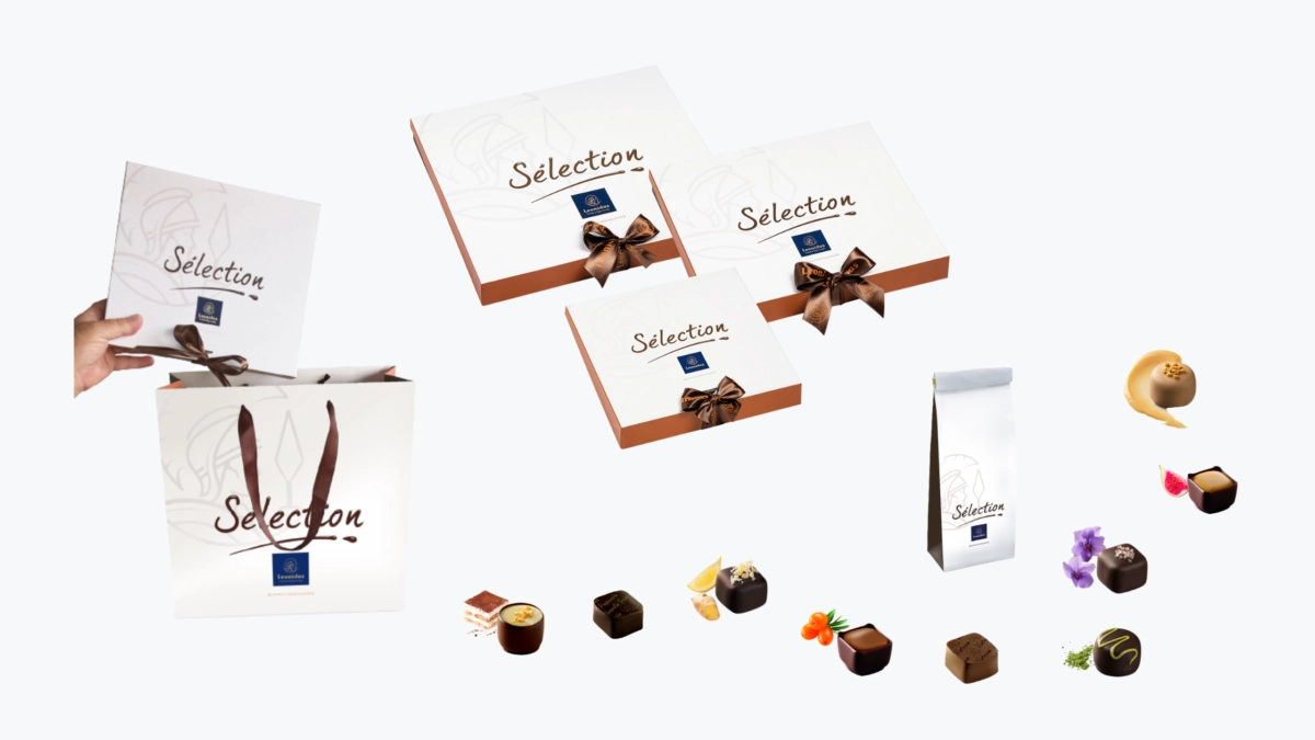 Selection este o gama aparte Leonidas. Pralinele, pregatite dupa retete sofisticate, nu se asociaza cu celelalte praline si specialitati Leonidas. Se comercializeaza separat, doar in ambalajele proprii.